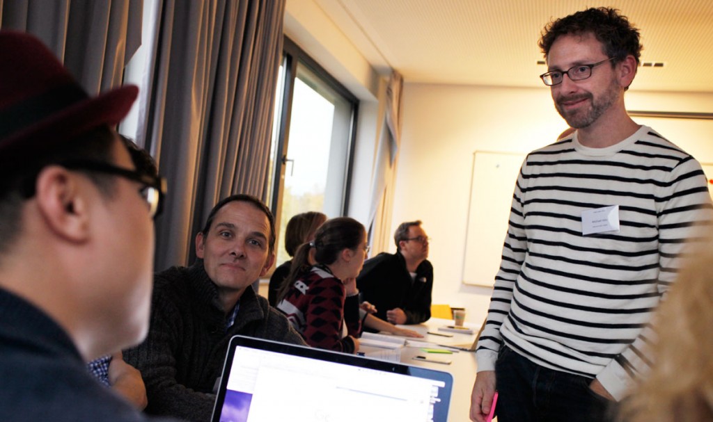 Michael Hörz (im Bild rechts) vermittelt gerne seine Datenjournalismus-Kenntnisse – hier beim Daten-Labor 2015. Foto: Franziska Senkel