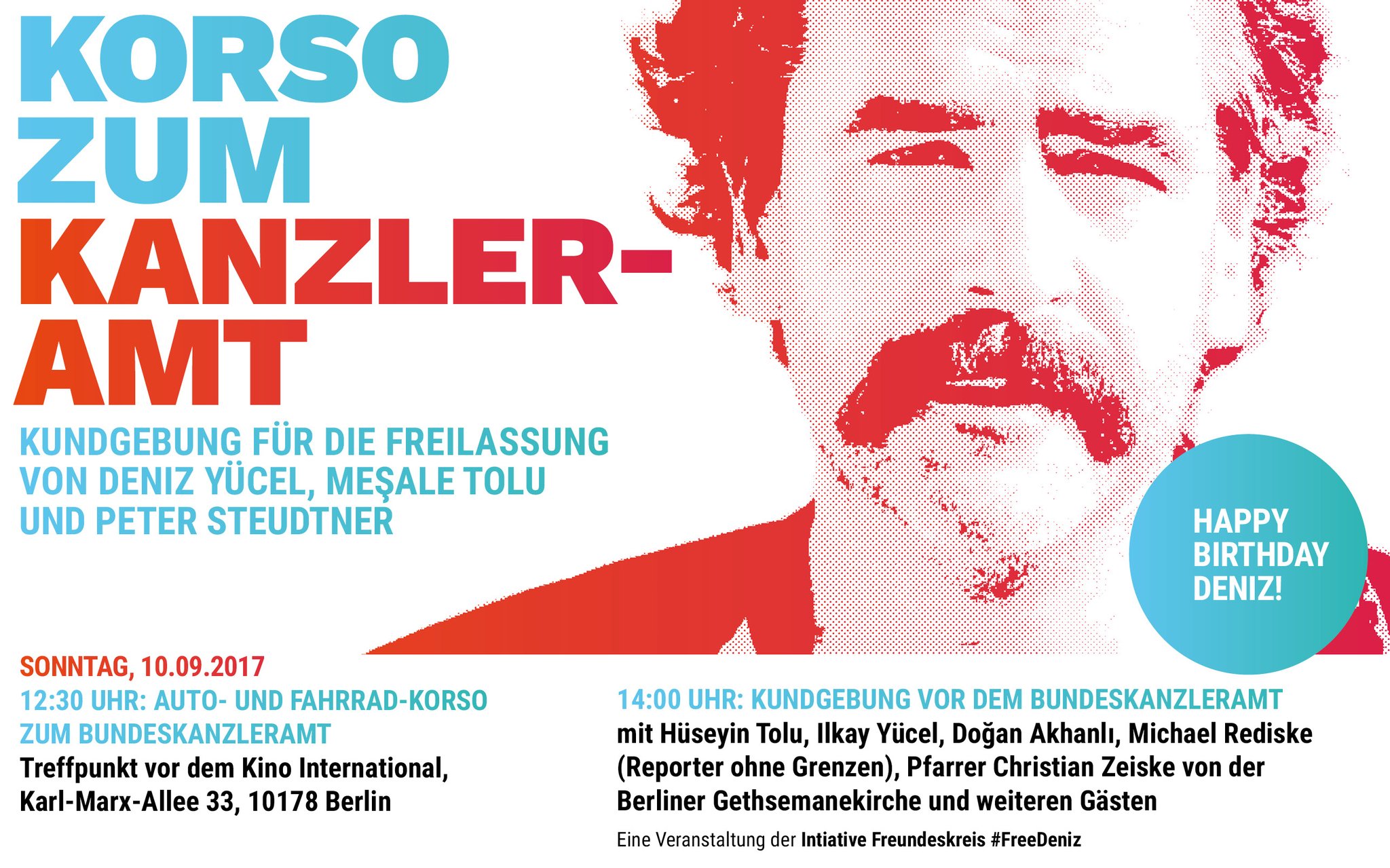 14 journalistische Organisationen fordern in einem Offenen Brief an den türkischen Staatspräsidenten Recep Tayyip Erdoğan die sofortige Freilassung von Deniz Yücel und den anderen aus politischen Gründen inhaftierten Journalistinnen und Journalisten in der Türkei. Yücel sitzt am 10. September bereits 209 Tage in Haft. Es ist sein 44. Geburtstag.