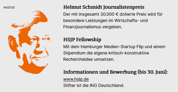 Der Otto Brenner Preis ehrt besonders kritische und analytische journalistische Stücke und wird in diversen Kategorien verliehen. Das Preisgeld beträgt insgesamt 47.000 Euro, u.a. werden drei Recherche-Stipendien in Höhe von je 5.000 Euro vergeben. Hier gibt es mehr Infos. Bewerben könnt ihr euch bis zum 30. Juni.