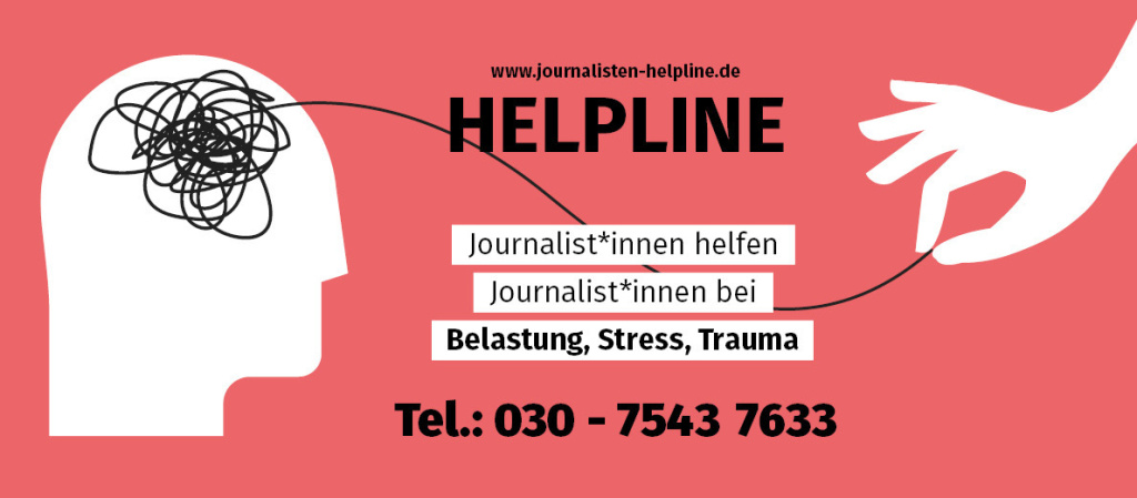 Stress, Druck, arbeiten an der Belastungsgrenze: Journalismus kann krank machen. Kennt ihr das? Habt ihr Ärger mit euren Redaktionsleiter:innen? Mit Kolleg:innen? Rauben euch diese Probleme den Schlaf? Oder hat euch ein Erlebnis im Job traumatisiert? Dann ruft jetzt unsere Helpline an! Unser kostenloses und anonymes Beratungsangebot startet am 2. November. Ihr erreicht hier erfahrene Kolleg:innen, die selbst Journalist:innen sind. Unser Hilfsangebot ist natürlich keine Alternative, beispielsweise zu einer Therapie, aber vielleicht können wir Lösungswege für eure Sorgen aufzeigen. Unter www.journalisten-helpline.de bieten wir offene Sprechstunden und online buchbare Gesprächstermine an. Ein ganz herzlicher Dank geht an die Förderer, die dieses Projekt möglich gemacht haben. Die Finanzierung ist erst einmal für sechs Monate gesichert. Wir hoffen aber, dass wir die Helpline darüber hinaus weiterbetreiben können.