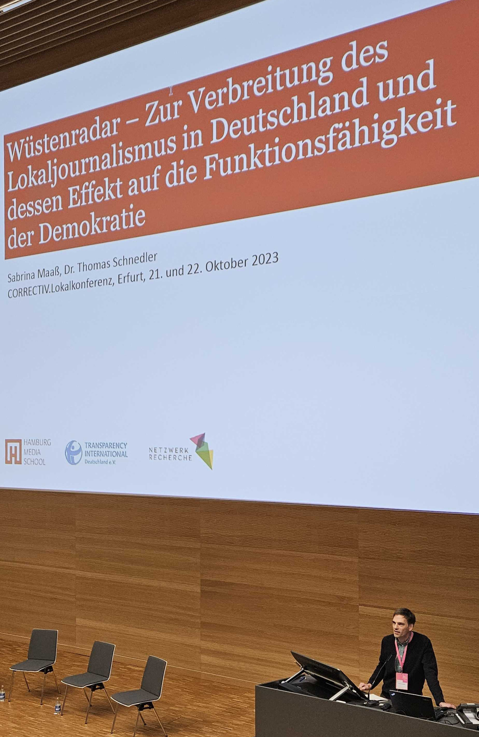 Bei der ersten Correctiv.Lokal-Konferenz am vergangenen Wochenende durften wir von NR nicht fehlen. Manfred Redelfs sprach bei der Tagung in Erfurt in einem Workshop über journalistische Auskunftsrechte. Und Thomas Schnedler präsentierte – gemeinsam mit Sabrina Maaß von der HamburgMedia School – in einer Keynote erste Ergebnisse der Wüstenradar-Studie, die den Wandel des Lokaljournalismus analysiert. Bald mehr dazu!