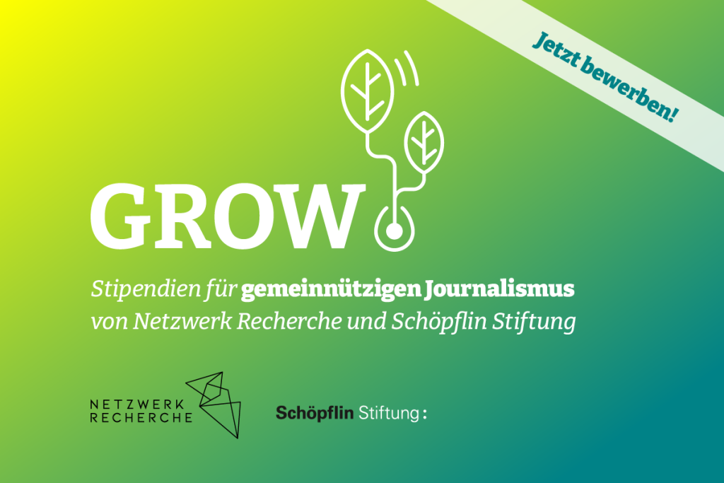 Bis zum 8. September laufen unsere Ausschreibungen mit der Schöpflin Stiftung noch. Mit dem Grow-Stipendium werden Gründer:innen mit einer Anschubfinanzierung, individuellen Coachings und maßgeschneiderten Workshops dabei unterstützt, ihre journalistischen Projekte umzusetzen. Das Greenhouse Fellowship ermöglicht in diesem Jahr eine Recherche zu der Frage, warum Journalist:innen ihren Beruf an den Nagel hängen – und was sich dagegen unternehmen lässt. Jetzt bewerben!